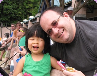 Yes sports fans I tell you the truth! It only took a year. We came back from Memorial Day weekend at Grandma’s house and thought we’d start discussing the possibility. We didn’t even finish our sentence about “one day” sleeping in her big girl bed and she shot out of the room and ran to her bed and climbed up in it. She hasn’t really looked back. It’s been a week. I checked this out with her attachment therapist and she agreed that now is the time. We have to break down the crib together so it just doesn’t disappear and she wonders what else can just disappear. We are taking turns sleeping on the floor in the girls bedroom, but I don’t think we will be in there much longer. It is amazing that we get both girls to sleep at the same time! And it takes less time!!! So there are many big things happening around here. Yaya has come out of her almost month long funk that we think was related to her one year anniversary. I don’t feel like going into it all because well…it’s over and why relive all that. So all in all I’d have to say our girl is doing really well. It feels good to be able to say that, it has been a long time in coming. She is becoming so fun and personable, she is blooming as they say.